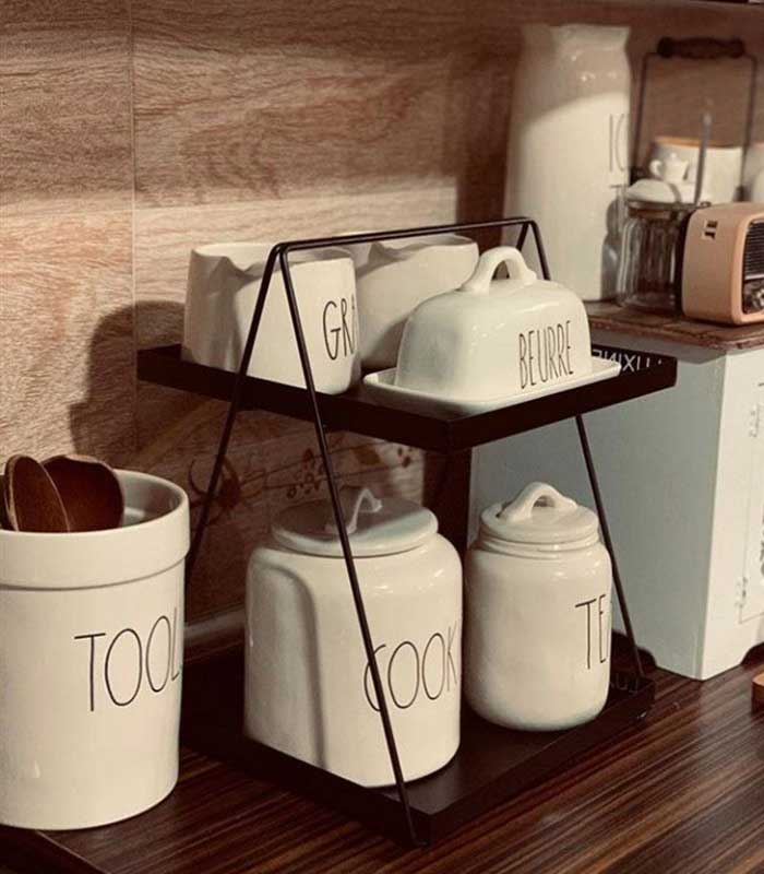 اگر دارای گلدان هستید و بخواهید استند خریداری شده را زیباتر کنید، میتوانید گلدانهای زیبا را در طبقه اول آن قرار دهید و سایر لوازم آشپزخانه را در طبقه دو بچینید.